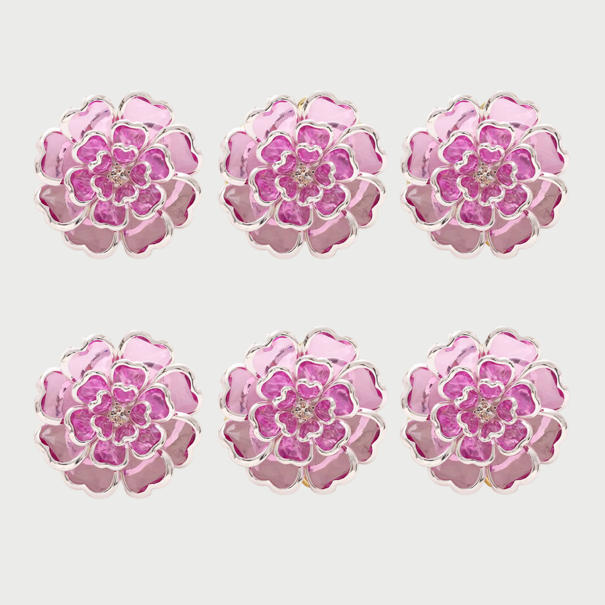 Add a soft and stylish upgrade to your outfit with the Flower Button Covers in Pink. Designed to clip over standard buttons, these delicate floral covers bring a fresh, romantic touch to any blouse, shirt, or blazer — no sewing required.